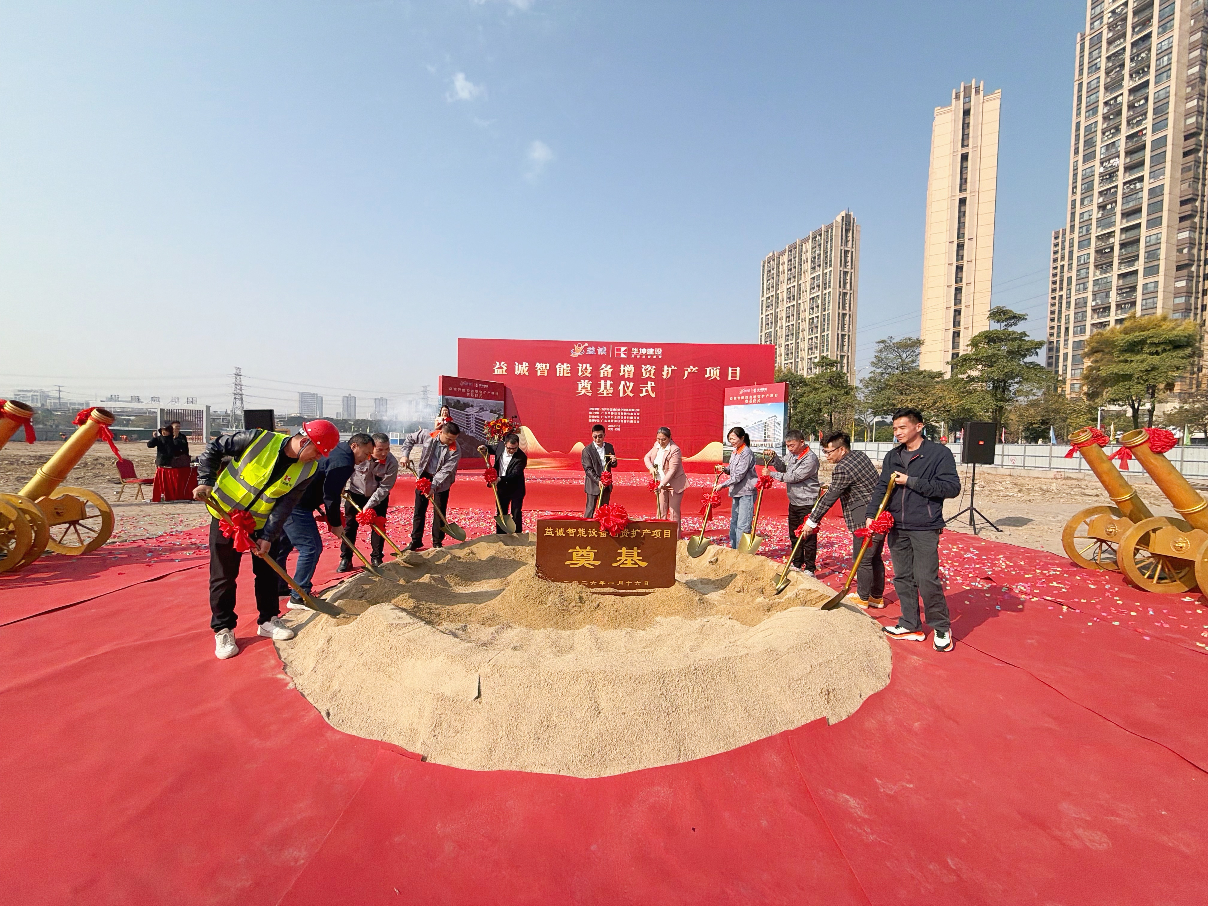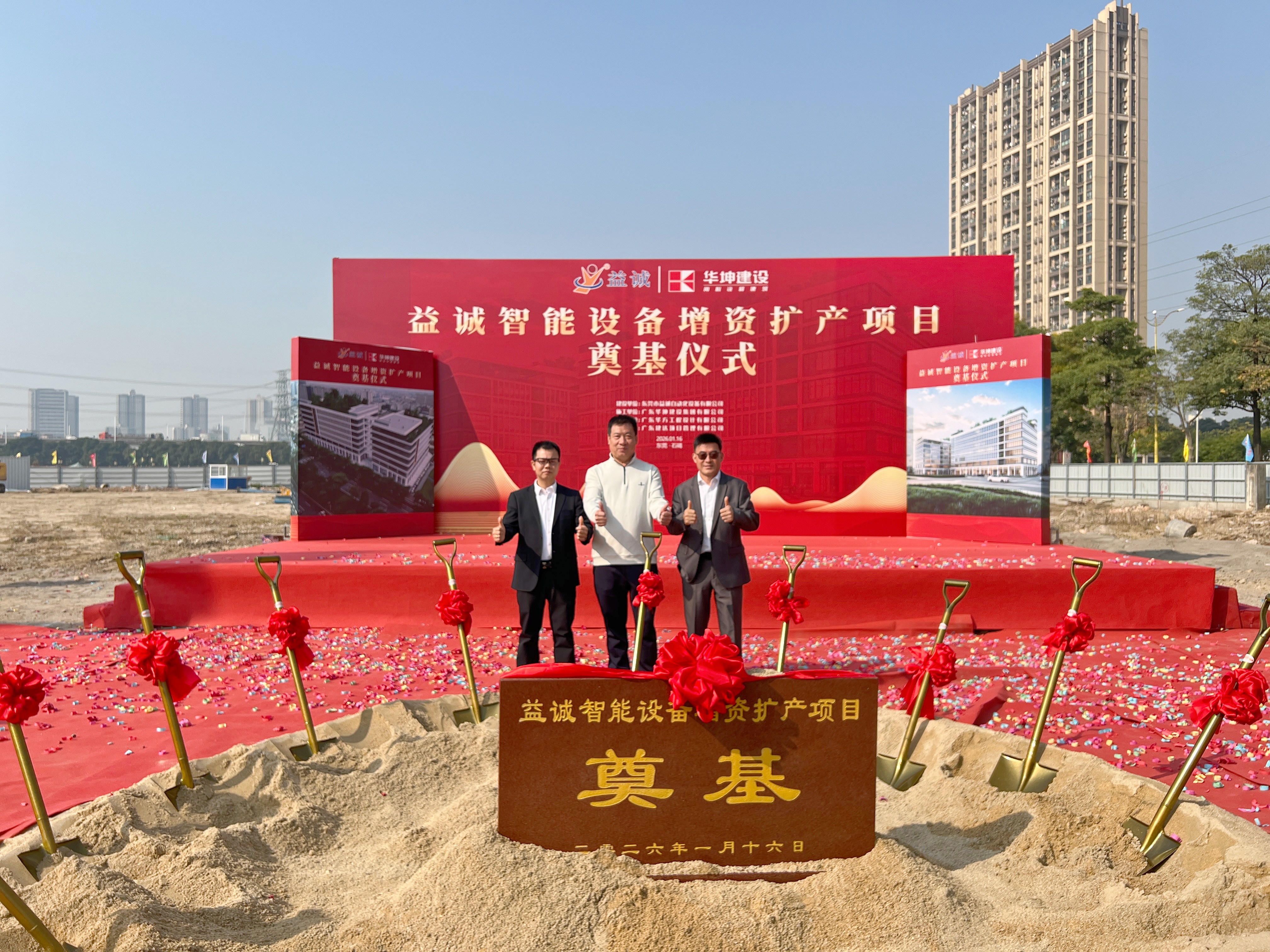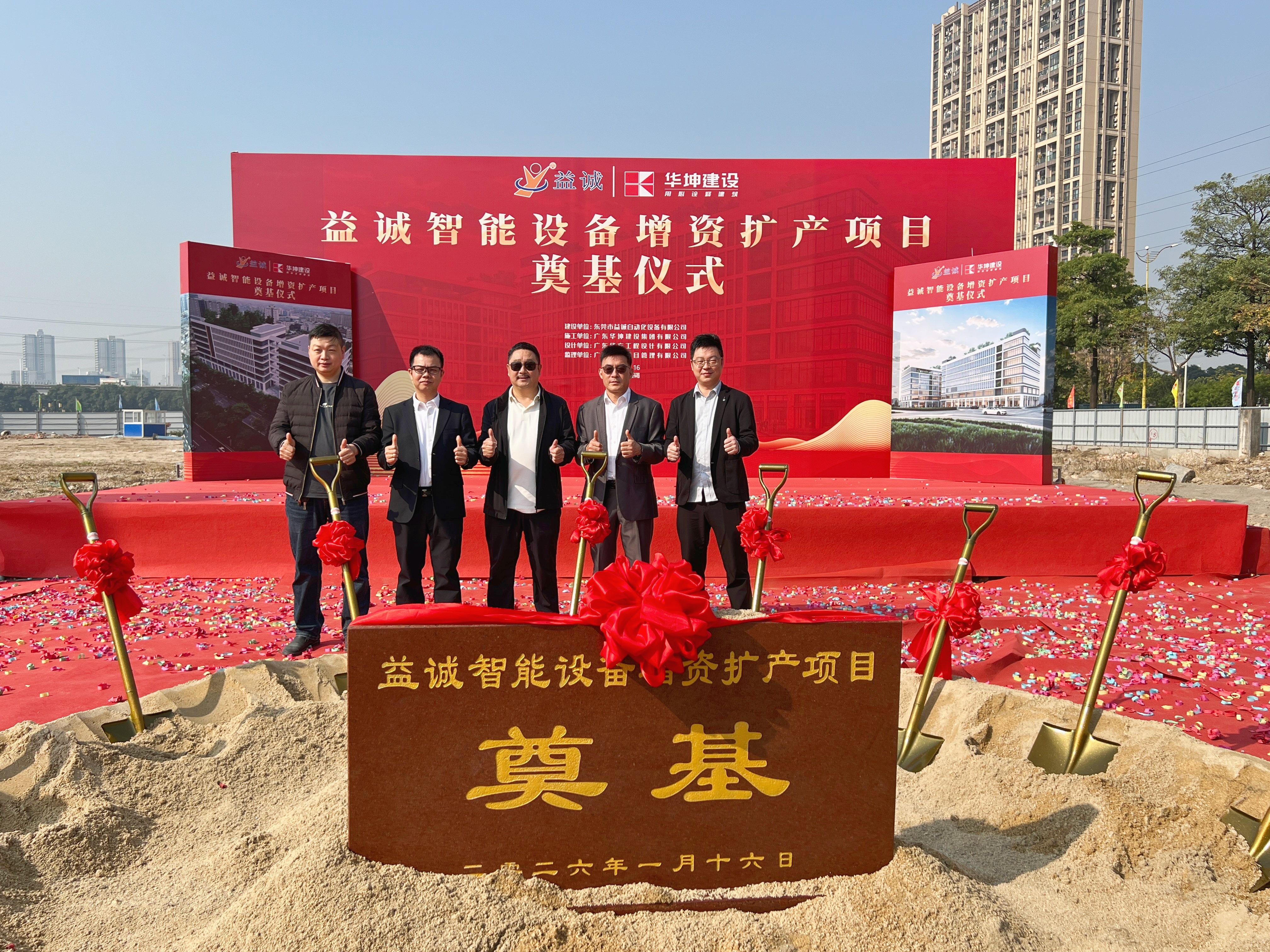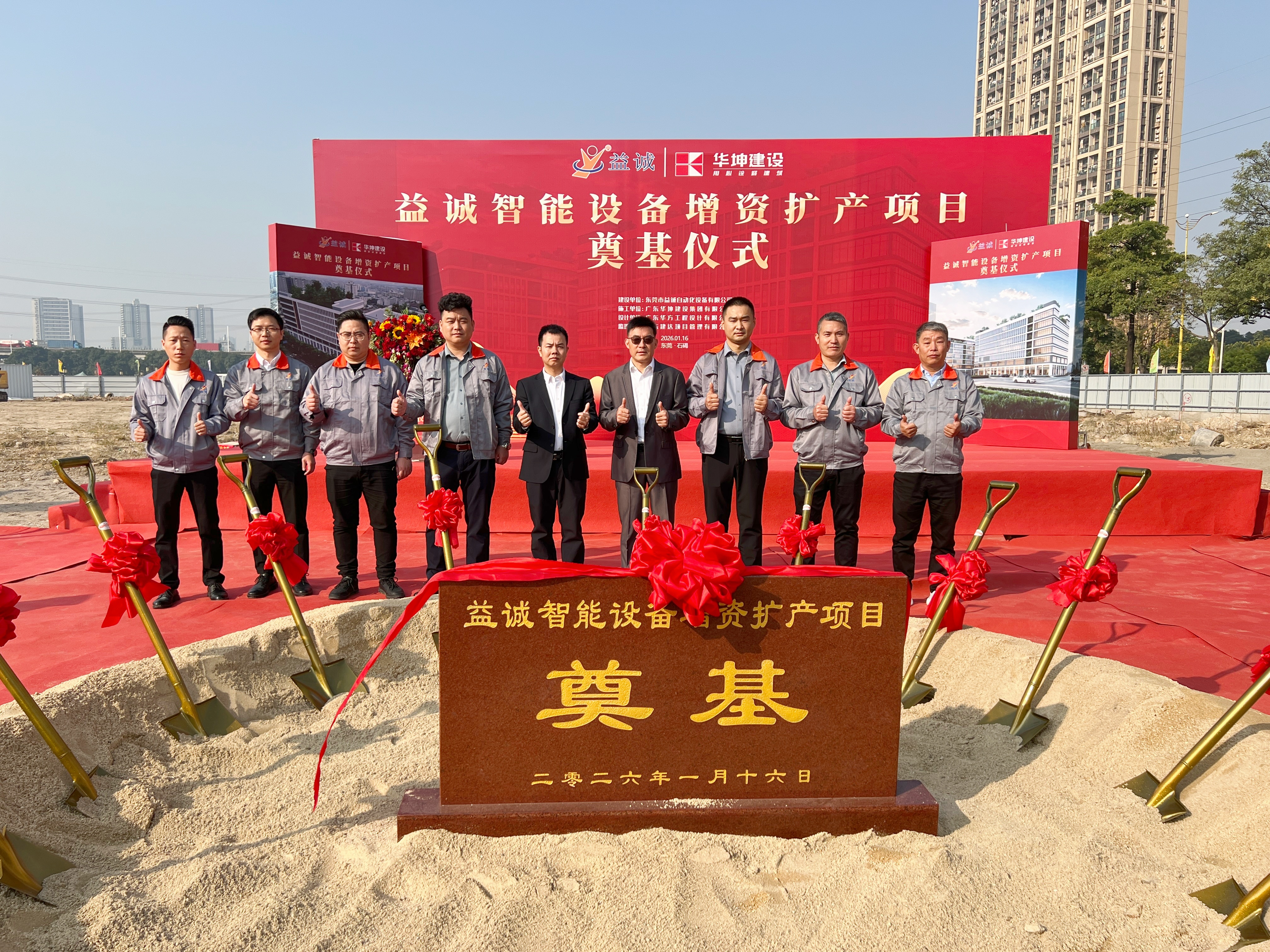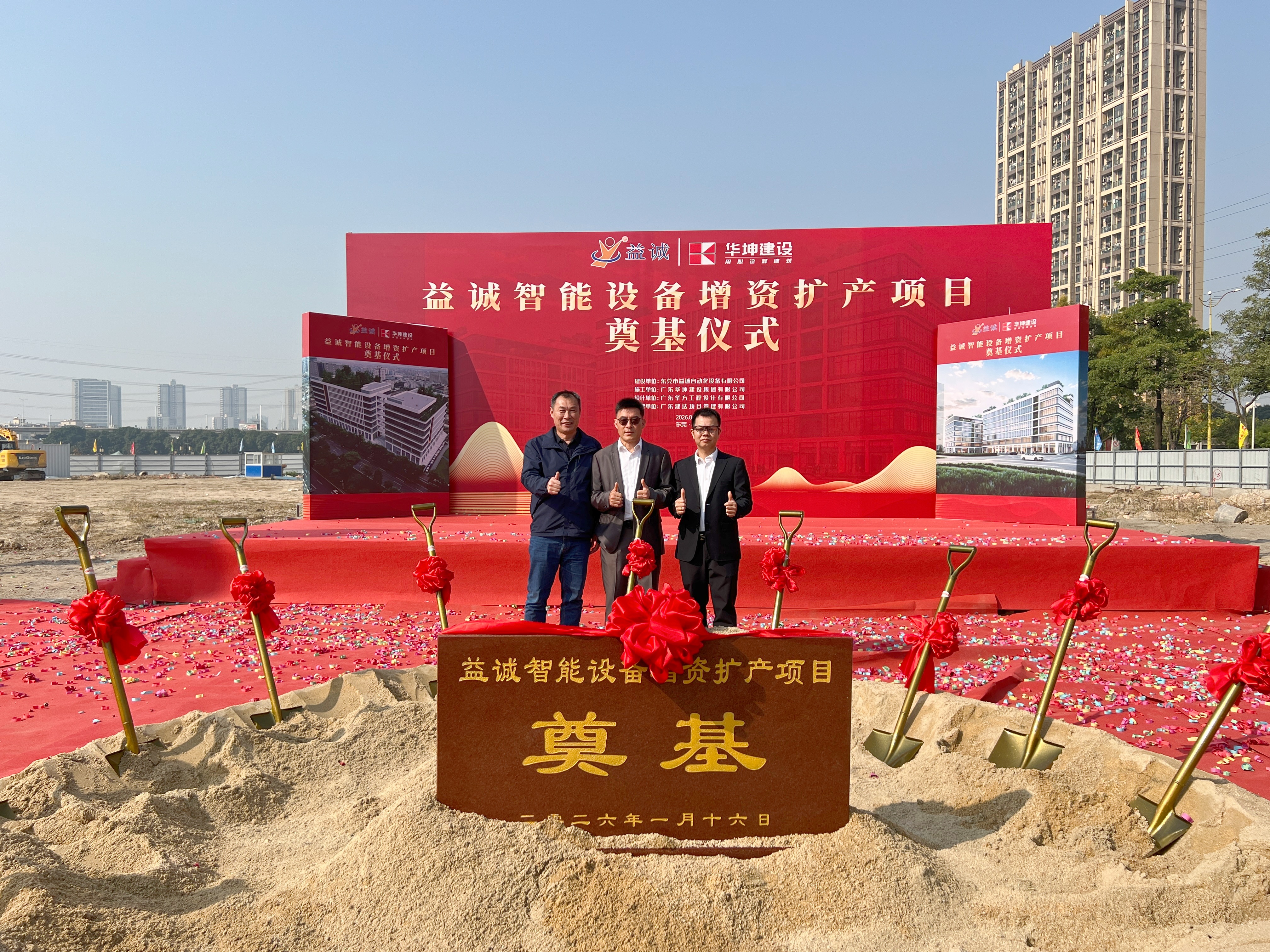 2026年1月16日,艷陽高照,晴空萬里。在這充滿希望與激情的季節(jié),益誠智能設(shè)備增資擴(kuò)產(chǎn)項目奠基儀式隆重舉行。益誠自動化董事長袁董、總經(jīng)理潘總攜眾高管與本項目的設(shè)計方、施工方、監(jiān)理方等參建單位代表齊聚一堂,共同見證這一具有里程碑意義的盛典,現(xiàn)場氣氛熱烈非凡。
